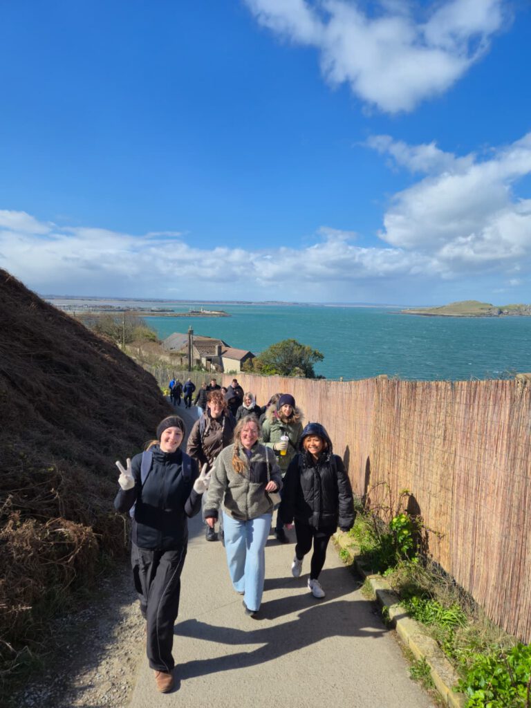 Ein besonders unvergessliches Erlebnis war unser Ausflug nach Howth. Gemeinsam fuhren wir mit der Straßenbahn dorthin und trafen uns zunächst an einem Treffpunkt, an dem wir erste Souvenirs kauften. Anschließend begannen wir unsere gemeinsame Wanderung entlang der Küste. Währenddessen machten wir zahlreiche Fotos und genossen die beeindruckende Landschaft sowie die wunderschönen Ausblicke. Nach der Wanderung fuhren wir mit dem Bus zurück an die Küste, wo wir den Tag bei einem gemeinsamen Abendessen in einem Restaurant ausklingen ließen.
